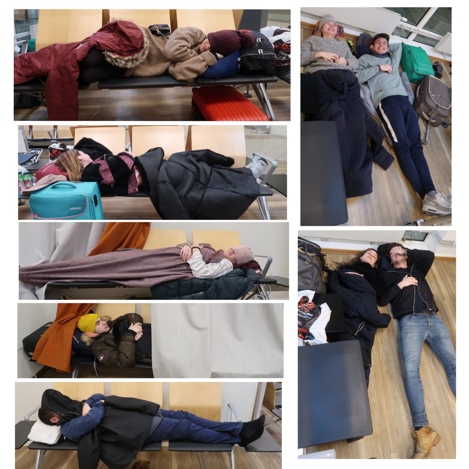 Pero sin duda lo mejor de Malmö fue la maravillosa noche que pasamos en nuestro airbnb gratuito. ¿Para qué necesitas camas si tienes bancos y suelo? ¿Para qué dormir sin luz si puedes dormir con 80 bombillas encendidas? ¿Para qué manta si puedes dormir tapado con el abrigo? Dormimos en el aeropuerto, ya que nuestro vuelo salía a las 6 de la mañana y es que estas son las experiencias que se viven en el Erasmus y que probablemente no se repetirán.